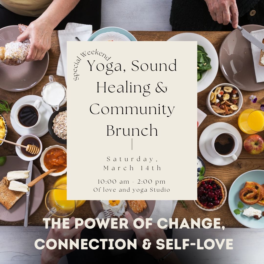 Saturday, March 14th, you are warmly invited to a heart-centered Yoga, Sound Healing & Community Brunch, where movement, sound healing, and shared nourishment come together in the spirit of community and connection.